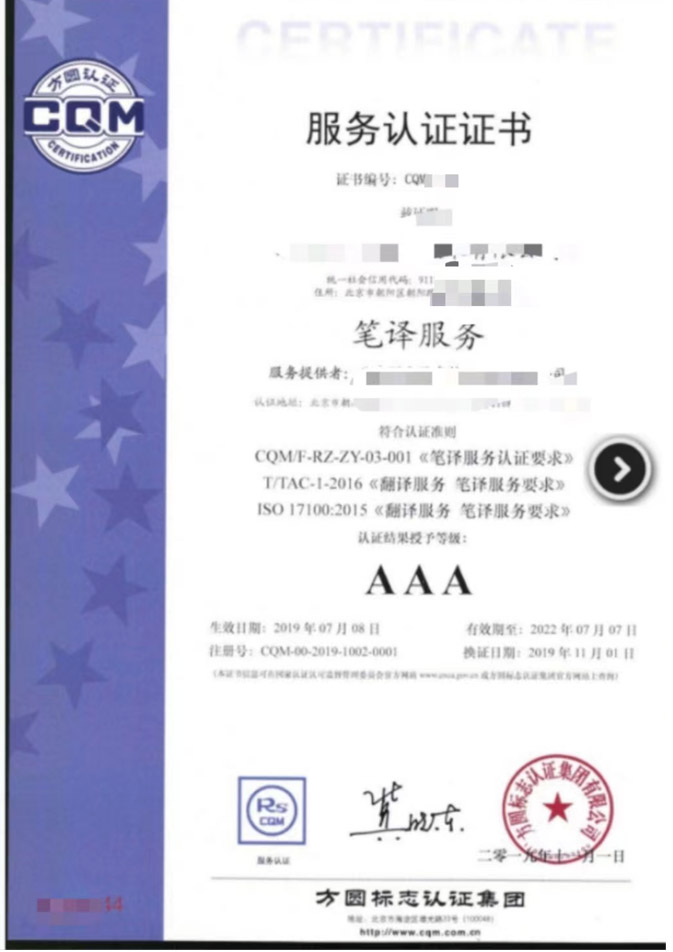 翻译服务认证和翻译管理体系认证依据ISO 17100-2015 《笔译服务要求》、T/TAC 1-2016 《翻译服务 笔译服务要求》评价设置五个等级,即服务评价结论AAAAA级、AAAA级、AAA级、AA级、A级。